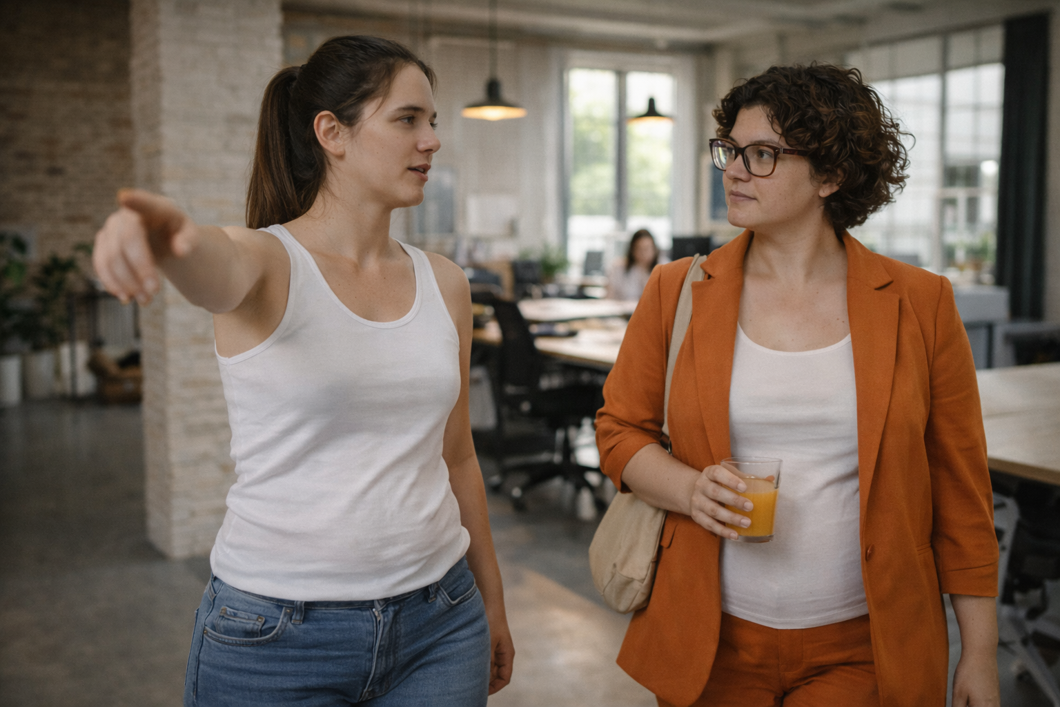 Maite apretó el pequeño timbre del portal y se alejó un paso para que se la viera bien en cámara. A los pocos segundos, entraron en lo que era la recepción, donde les esperaba una mujer de cabello rizado y largo hasta los hombros, muy alta, con cuerpo de gimnasio y pectorales sobresalientes del escote de la camisa holgada. Su piel pecosa y sus ojos brillantes y expresivos les recordaban viejos tiempos, de cuando estudiaban ciclos.